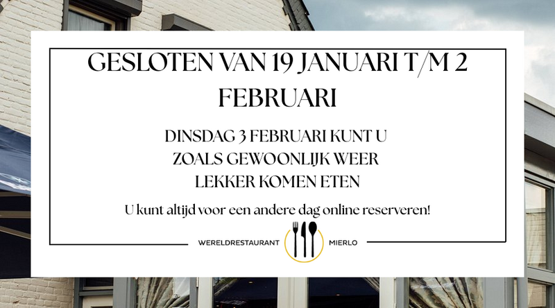 Indien u wilt reserveren voor de kerstdagen, graag telefonisch contact opnemen.